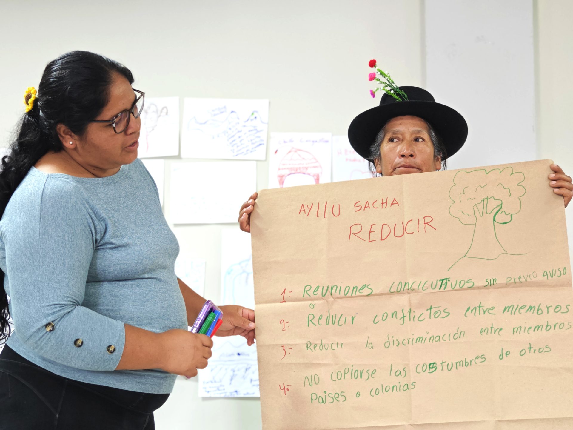 A través de un mapeo, se identificaron organizaciones de sociedad civil y organizaciones de mujeres indígenas en las regiones de Ayacucho y Huancavelica que integran en sus ejes de trabajo temas de justicia climática y de género. Durante el primer encuentro, se realizó un diagnóstico de las organizaciones sobre necesidades, prioridades y desafíos que limitan su participación en espacios de decisión. A partir de este diagnóstico, se diseñaron propuestas de planes estratégicos adaptadas a sus organizaciones.